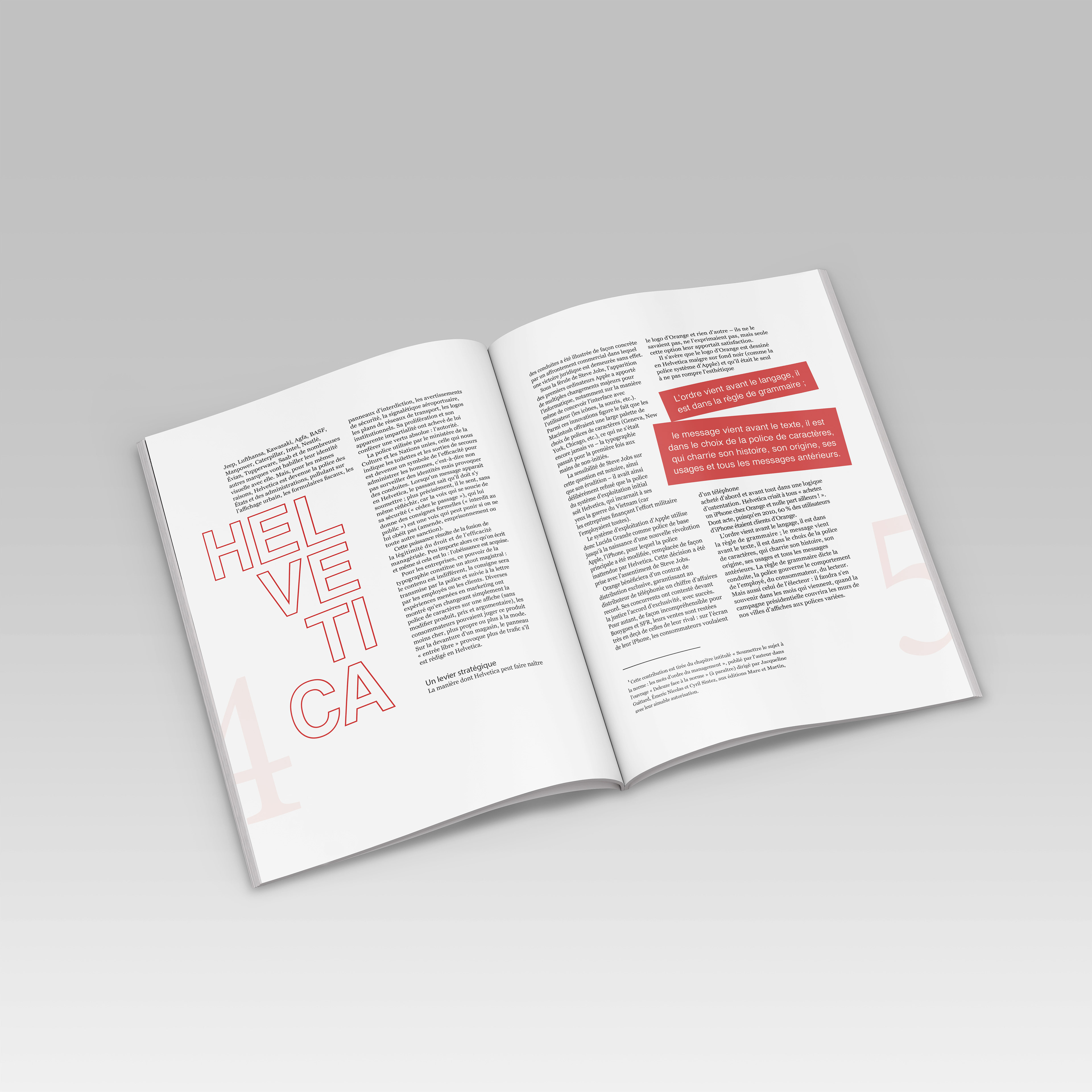 Mandat : Mise-en-page d'un article. La mise-en-page doit démontrer la maîtrise des concepts et règles de typographie. La page couverture doit être conçu uniquement avec de la typographie sans déformations.